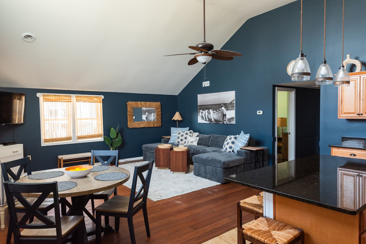 You will love this unique and romantic escape! Just a quick walk to the nearest beach access and close to many great restaurants, this is the perfect getaway for couples. Our studio features a comfortable queen sized bed, smart tv, Keurig coffee maker, mini fridge and a luxurious custom tiled shower.
