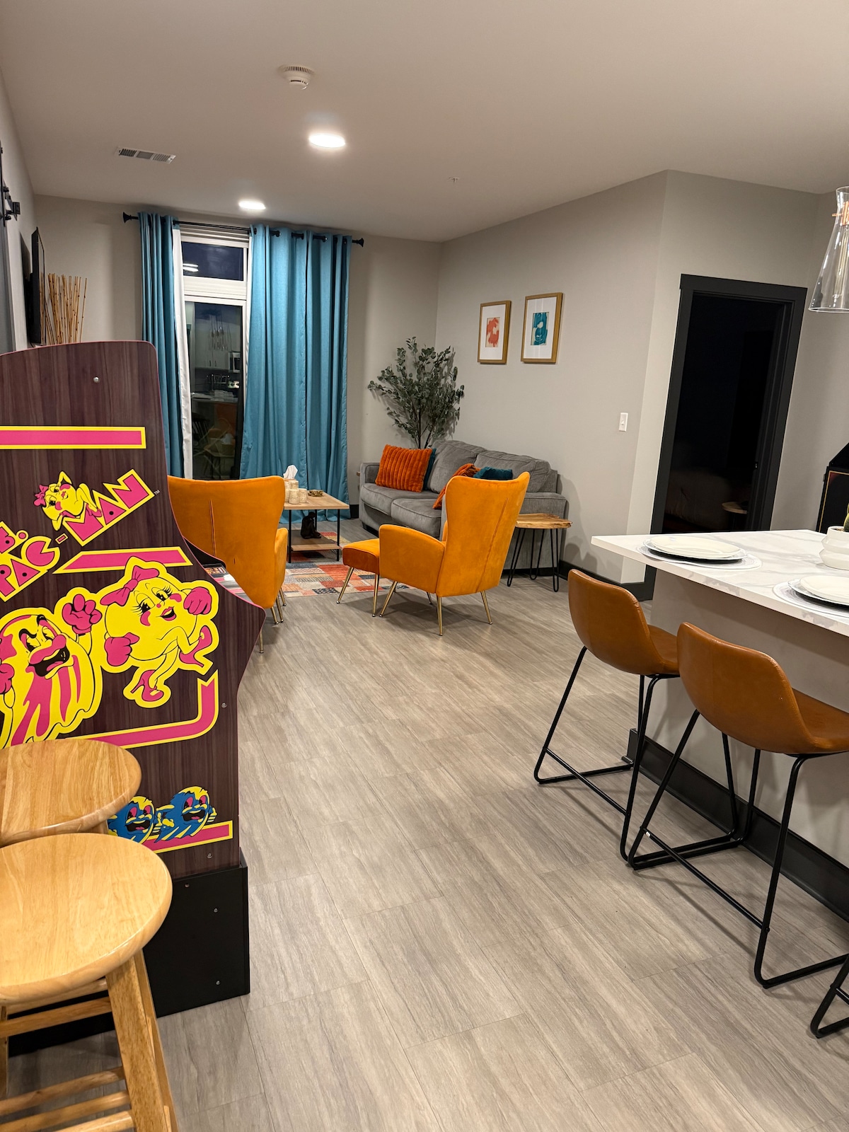 Bienvenue au Black Swan sur la 5e ! Cette élégante retraite de 4 chambres et 2,5 salles de bain dans le centre-ville de Bardstown peut accueillir 8 personnes. La 4e chambre était autrefois une salle de sport et un putting green, mais dispose d'équipements de base pour 2 personnes supplémentaires. Profitez d'un salon confortable avec cheminée, cuisine complète, patio privé avec foyer et télévision extérieure, télévisions intelligentes, Wi-Fi rapide et jeux de société. Marchez jusqu'aux meilleurs bars à bourbon, restaurants et sites historiques. Comprend un parking hors rue et une buanderie à domicile. Cafetière Keurig avec dosettes également disponibles.