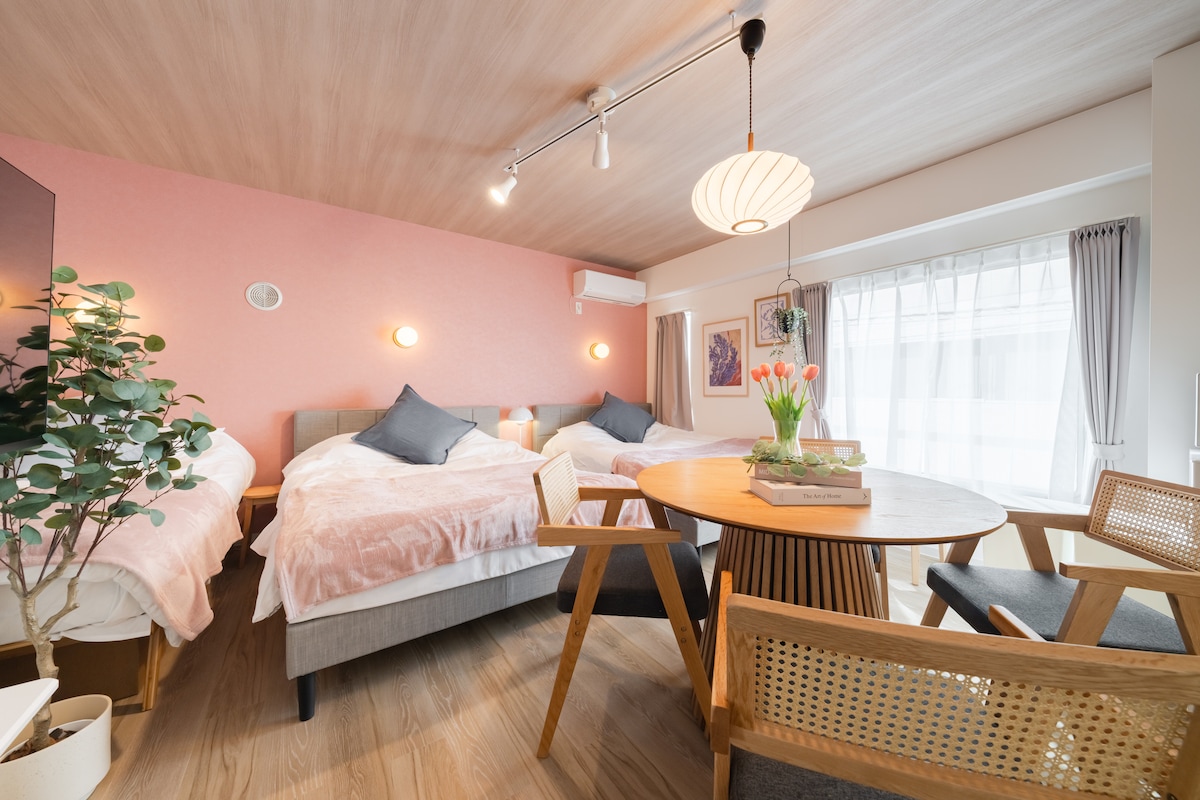 Votre base idéale pour découvrir tout ce que Tokyo a à offrir. Les lits jumeaux et les lits superposés en option peuvent accueillir jusqu'à 4 personnes pour que personne ne soit laissé de côté. Espace repas immense pour 4 personnes avec essentiels pour préparer tout type de repas. Équipé d'une machine à laver 2-en-1 pour que vous soyez toujours frais et propre pour votre prochaine aventure. Chaque chambre présente l'art local à travers le regard d'un résident de Tokyo, votre fenêtre pour découvrir la plus grande ville du monde.