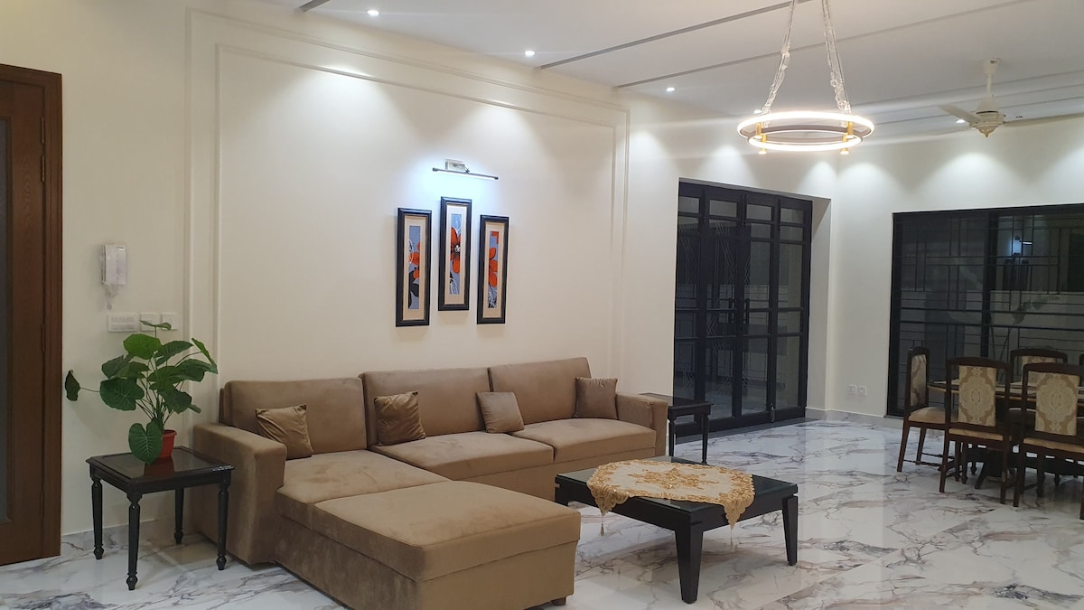 Private & independent full house Caretaker available onsite Secure & quite Location WIFI Daily cleaning available 5-min to ring road 10-min to airport All rooms are airconditioned. Bath amenities & fresh linen available on check-in. Parking inside & outside Dinning room with sitting area TV lounge 2 Master bedroom with attached bathrooms UPPER 3 comfortable bedrooms with attached bathrooms shower cabins Terrace Guest access Every part Secure & private house Corner house Housekeeping available
