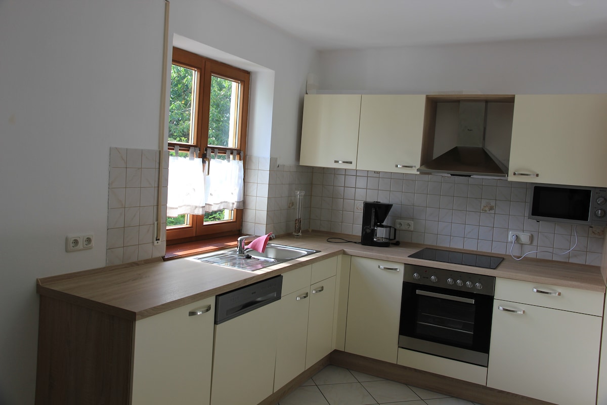 Appartement d'une pièce moderne, récemment rénové, très bien situé. De plus, je propose deux vélos que vous pouvez en profiter gratuitement. La salle de bain est grande et la kitchenette séparée de la zone de couchage. À pied, la vieille ville n'est qu'à environ 15 minutes, vous marchez détendu le long de la rivière. Il y a un parking gratuit disponible. Dans la kitchenette entièrement équipée, il y a deux plaques ainsi qu'un micro-ondes avec fonction de cuisson.