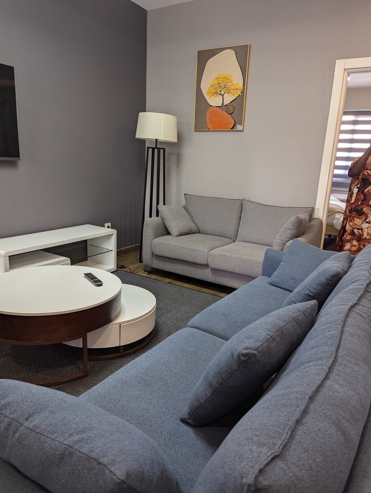 Découvrez notre appartement deux pièces, une alliance parfaite entre tradition et modernité. Profitez d'un séjour spacieux de 18 m² et d'une chambre climatisée de 12 m² avec placard intégré. La cuisine est entièrement équipée avec four, micro-ondes, réfrigérateur, vaisselle et couverts. Pour votre confort optimal, l'appartement est climatisé et autonome en électricité grâce à un groupe électrogène en cas de délestage. Bénéficiez également du Wi-Fi illimité et de Netflix pour vos divertissements.