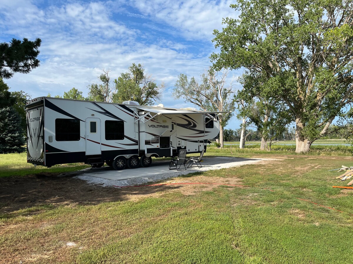 Profitez des sons de la nature en séjournant dans cet endroit unique. Campeur entièrement approvisionné/équipé situé sur un terrain permanent sur Blue Lake. Les voyageurs peuvent profiter d'un bar/barbecue/cabane en plein air. Y compris un réfrigérateur pour les boissons, une télévision, un barbecue à gaz et une cheminée à gaz. Les voyageurs ont également accès à un putting green et à une balançoire.