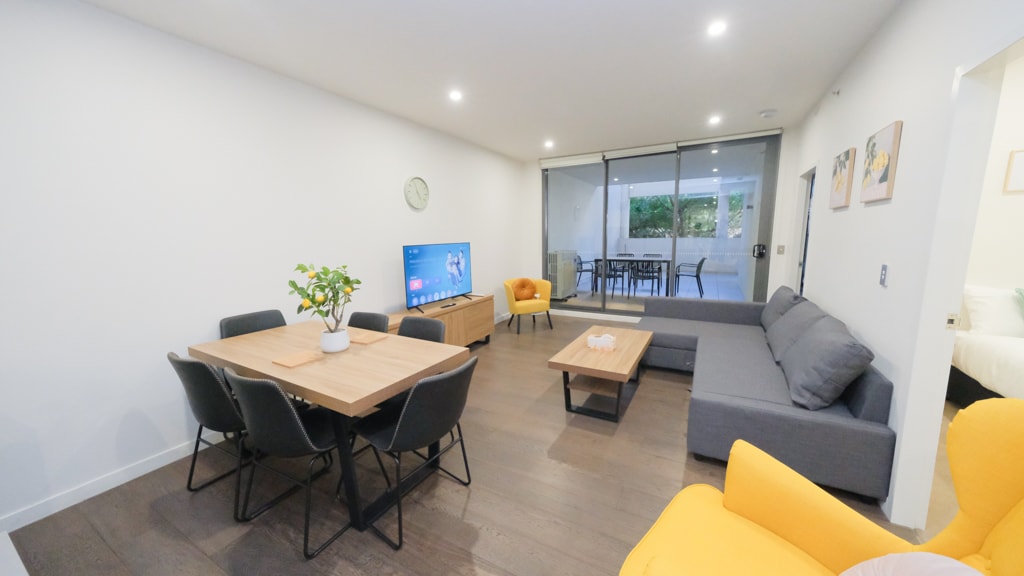 Idéal pour les déménagements, les séjours liés à l'assurance, les professionnels et les séjours prolongés à Sydney. Nettoyage gratuit toutes les 14 nuits pour les séjours de 28 nuits ou plus ∙ Appartement 2 CHAMBRES ∙ Climatisation centrale ∙ Lit King Size, lit Queen Size et canapé-lit ∙ À quelques pas de la gare, de cafés, de boutiques, de Westfield et du quartier chinois animé de Burwood. Avec un espace de vie spacieux, une cuisine complète et des chambres confortables, c'est le point de départ idéal pour explorer Sydney tout en profitant de toute la commodité et de l'effervescence de la vie intérieure-ouest.