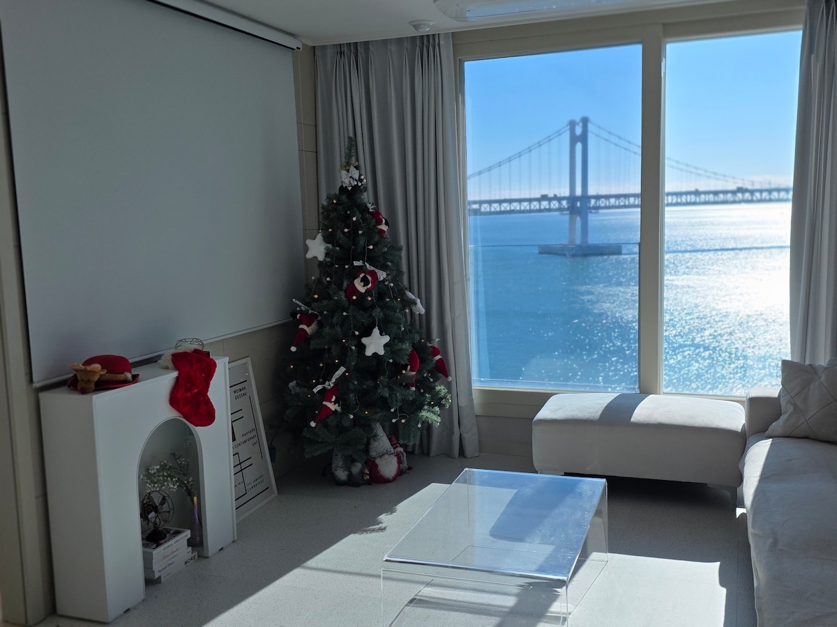 Vue sur le pont Gwangan / Décoration de Noël / Jusqu'à 6 personnes (même prix à partir de 4 personnes) / Jacuzzi / 1 bouteille de vin offerte / Départ à 12h