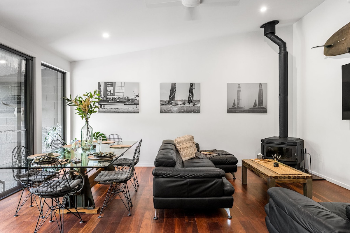 Entrez dans cette maison côtière unique offrant un accès facile à la plage de Skennars Head, avec une vue imprenable sur l'océan et l'arrière-pays, des intérieurs aérés et le son relaxant de l'océan. Réveillez-vous au cœur de la nature, profitez d'un espace intérieur-extérieur ouvert et admirez les couchers de soleil dorés depuis votre terrasse privée sur le toit. Deux lits king size de luxe, la climatisation dans chaque chambre, un barbecue, une cuisine gastronomique, une douche extérieure et un sauna infrarouge font de Coastal Oasis l'escapade côtière ultime pour les courts ou longs séjours.