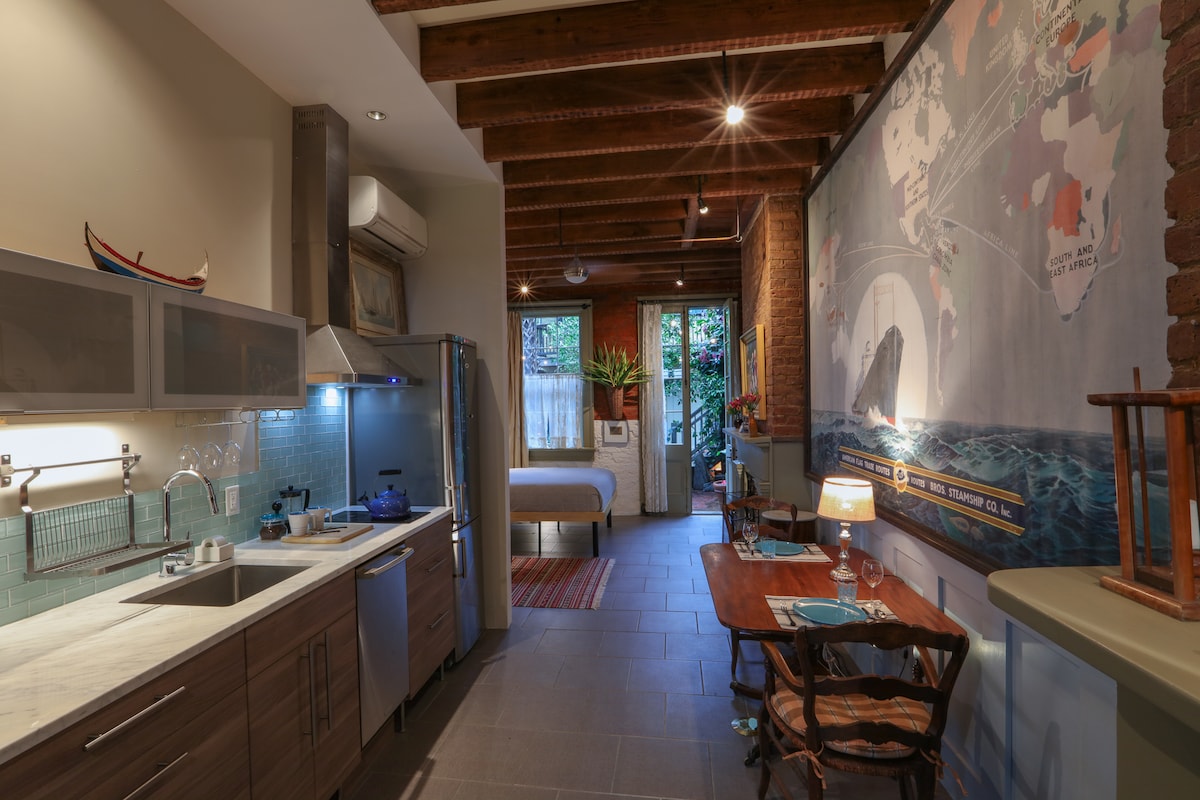 Studio ensoleillé situé dans le quartier historique d'Algiers Point. L'espace est ouvert et aéré, avec des puits de lumière qui donnent sur des chênes majestueux. Notre quartier longe la rivière et donne sur le quartier français. Nous sommes à seulement 15 minutes à pied du ferry, qui vous emmène au Canal St. Accès au centre-ville à pied et retour à un endroit confortable dans un quartier calme et sûr. Parfait pour les couples, les meilleurs amis, les voyageurs d'affaires ou en solo. Un endroit idéal pour le Mardi Gras. Idéal pour le FQ Fest ! Permis n ° 25-NSTR-12924