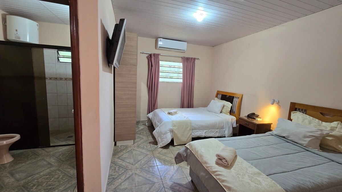 Avantages de l'emplacement Sur la Route 2 Mcal Feliz Estigarribia, Coronel Oviedo. Avantages de l'hôtel Garages Piscine Quincho Petit-déjeuner Wi-Fi Grand patio Terrain de volley-ball