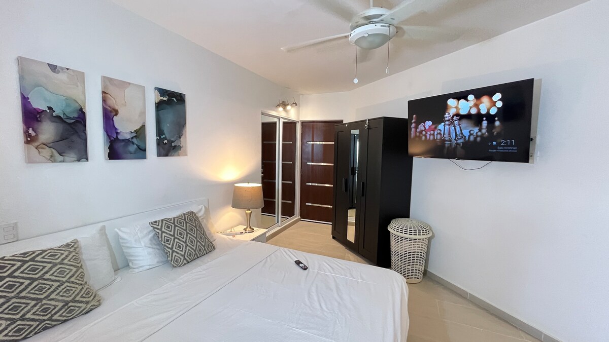 Découvrez le luxe dans cette toute nouvelle villa moderne, à deux pas de la plage. Doté de 3 suites parentales privées, chacune avec sa propre salle de bain, climatisation et ventilateur de plafond. Détendez-vous dans la piscine privée avec cascade, divertissez-vous près du barbecue extérieur et profitez d'un espace de vie ouvert et élégant. Une escapade parfaite pour les familles ou les groupes à la recherche de style, de confort et d'un emplacement tropical privilégié. À 5 min à pied de la salle de sport, du parc aquatique, de Santa Fe et de la plage. Réservez 4 nuits et obtenez 1 nuit gratuite « ALL 2026 » mentionnez cette annonce.