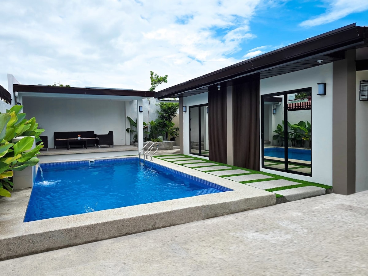 Bienvenue dans votre havre de paix ! Parfait pour les vacances, les célébrations intimes ou une escapade rapide en ville ! ✨ Dotée d'une piscine privée spacieuse, d'un coin repas en plein air et d'une chambre relaxante donnant sur la piscine, cette villa est conçue pour le confort et le style. 📍 À seulement 2 minutes du centre commercial Marquee et à quelques minutes de l'aéroport international Clark, vous apprécierez à la fois la commodité et la tranquillité. Réservez dès maintenant et soyez parmi les premiers à profiter de ce tout nouveau refuge !