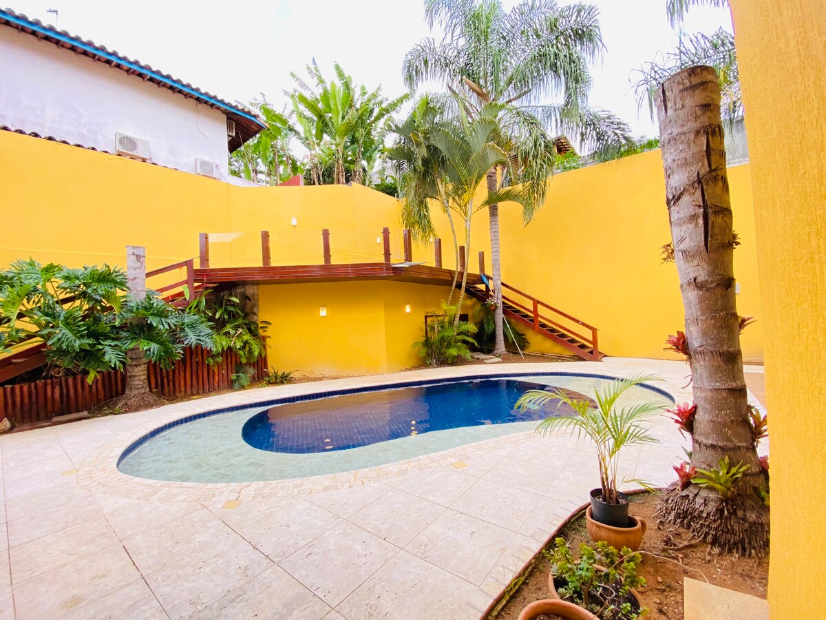 Maison super bien entretenue et complète, avec un espace de loisirs merveilleux avec une belle piscine en cascade, jacuzzi, barbecue, table de billard et salle de jeux. Construction sur deux étages, le bas avec cuisine complète, buanderie, salle de bain, 2 suites, lavabo, salle à manger et salle de télévision. Étage supérieur avec 2 suites, salle de cinéma et salle de jeux. Emmenez toute la famille dans ce super endroit avec beaucoup d'espace pour s'amuser, à proximité de la plage de Ferradura et à 4 min. du centre de Búzios.