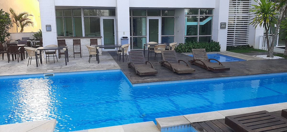 Profitez de votre séjour dans un appartement confortable à l'intérieur d'un hôtel, avec accès à la piscine, au centre de remise en forme et au sauna. Emplacement imbattable : à côté des meilleurs restaurants, à 3 minutes du centre-ville et à 8 minutes de la plage, le tout à pied. Parking disponible pour 40,00 R$/jour et petit déjeuner en option pour 40,00 R$ par personne. Les enfants jusqu'à 12 ans séjournent gratuitement, hébergés dans le lit ou le matelas existant. Remarque : hébergement Airbnb, pas de services hôteliers.