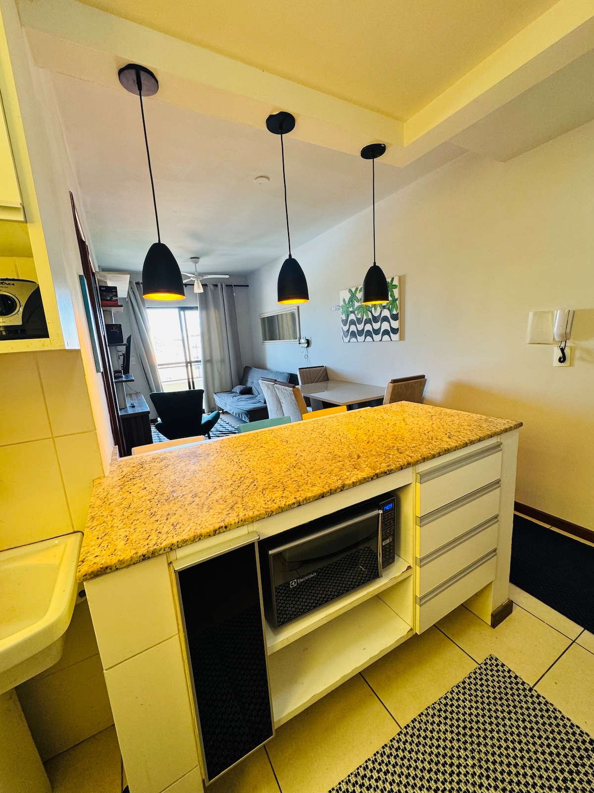 Appartement spacieux, chambre et salon avec climatisation et très ventilé dans le charmant quartier de Passagem. Espace confortable, avec cuisine équipée, zone de service et garage pour passer la nuit. Nous fournissons le linge de lit et de bain. Quartier calme et historique. ✅ À 3 min du pôle gastronomique. ✅ À 4 minutes de Praia da Passagem. ✅ À 4 min du bateau-taxi pour Ilha do Japonês (200 m). ✅ À 5 minutes de l'église São Benedito et du Largo São Benedito. À ✅ 15/20 minutes de Praia do Forte. ✅ À 20 minutes du centre-ville de Cabo Frio. TOUS À PIED !