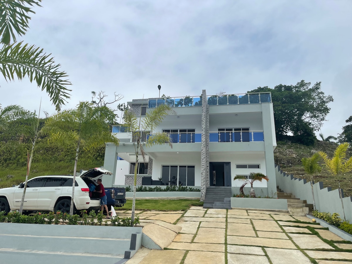 Une escapade en famille parfaite ! Situé à quelques minutes du parc central, de la rivière El Saltadero, du Malecón de Cabrera et des meilleures plages de la région, vous aurez des possibilités infinies de vous amuser et de vous détendre. Profitez d'une vue imprenable sur l'océan, la ville et la forêt depuis les fenêtres et le balcon. Les équipements comprennent une piscine privée, une balançoire, un foyer, un terrain de basket-ball, une table de domino, un filet de football pour enfants et un belvédère avec une cuisine extérieure, un barbecue, une douche et un demi-bain.