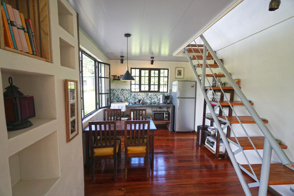 Évadez-vous dans une cabane privée confortable à Loaiza de Cachí avec une vue imprenable sur le réservoir et la vallée. Parfait pour : les couples à la recherche d'intimité et de nature, et les travailleurs à distance qui aiment travailler en pleine nature. Le chalet dispose d'une cuisine entièrement équipée, d'un lit double, d'une salle de bain privée, d'une connexion Wi-Fi haut débit, d'une télévision Chromecast, de jeux de société, d'un baby-foot et d'un barbecue extérieur avec du bois de chauffage inclus.