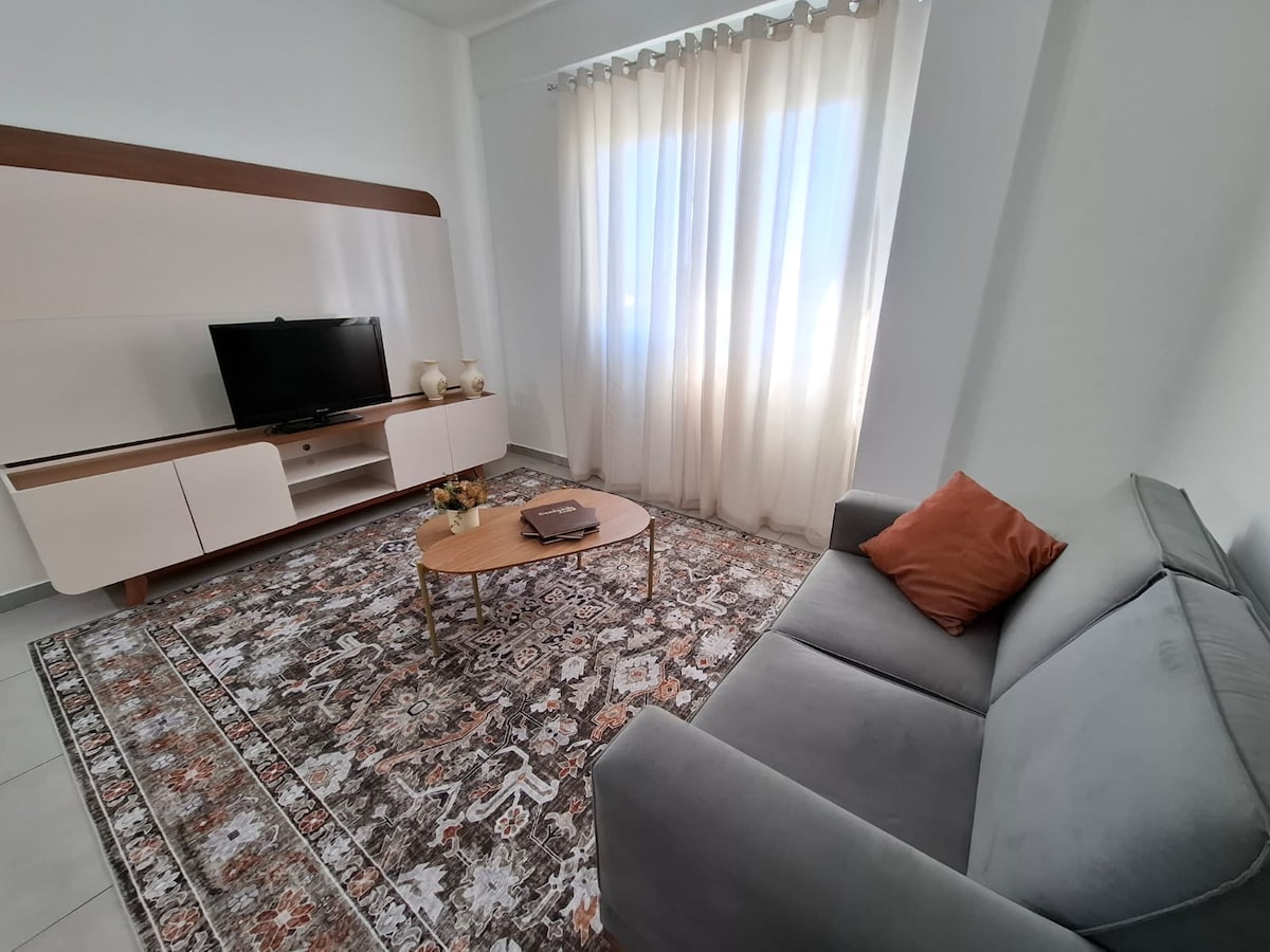 Il dispose de deux chambres doubles avec Ar et TV smart et une autre avec deux lits simples et Ar. cond. Possi Wi-Fi Une télévision intelligente et un canapé dans le salon, cuisine complète, cafetière, bouilloire, cuisinière, produits de base, vaisselle et couverts, micro-ondes, réfrigérateur. Une boîte de garage fermée et une sécurité 24h/24 à la porte. En plus d'une excellente boulangerie et confiserie devant le bâtiment.