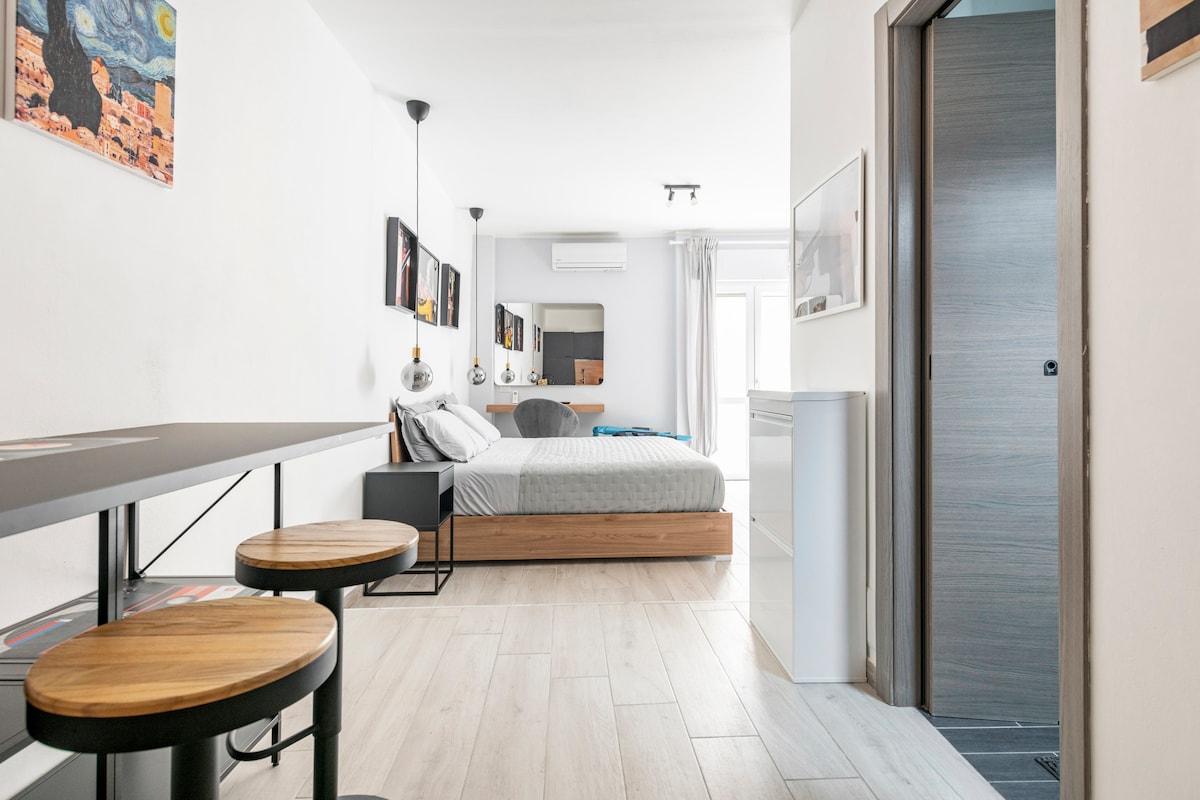 No matter whether you are a curious tourist or a business traveler, Manno 81 will adapt to your needs and welcome you with its warm atmosphere making you feel at home. The warm tones of the walls and furniture blend harmoniously, creating a relaxing and welcoming environment. Every detail has been designed to offer maximum comfort: from the fully equipped kitchen to the living area, which overlooks the pedestrian street in the heart of Cagliari's historic center.