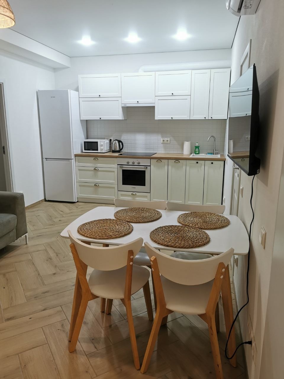 Bienvenue sur la page de notre appartement. Il s'agit d'un appartement moderne d'une chambre dans le centre-ville de Cahul, en Moldavie. Vous aurez accès à l'ensemble de l'appartement qui comprend une cuisine entièrement équipée et une salle de bains. L'appartement est situé au 5/5e étage. Il n'y a pas d'ascenseur dans le bâtiment. Malheureusement, les animaux de compagnie ne sont pas autorisés à l'intérieur de l'appartement.