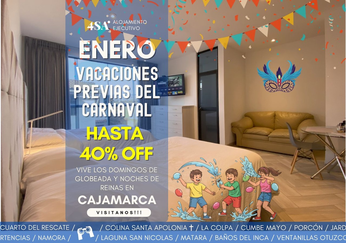 Hermoso MiniDepartamento totalmente amueblado, recientemente remodelado, perfecto para viajeros de negocios, parejas o viajeros solos. Ubicado en el tercer piso, zona residencial segura de Cajamarca, video vigilancia permanente. Cama de dos plazas, ropa de cama fresca, sábanas de 200 hilos 100% algodón, sofá, escritorio, TV + Netflix, Wifi, mesa y sillas, la cocina incluye utensilios y cubiertos, variedad de artefactos, jarra filtradora de agua alcalina. Baño independiente y walking closet.