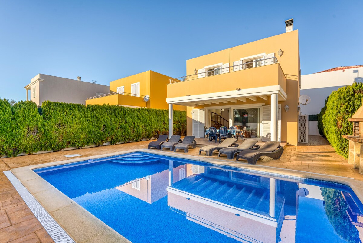 Preciosa villa con piscina privada a 150 metros de la playa. La propiedad está ubicada en la urbanización de Santandría, en el término municipal de Ciutadella de Menorca. Es una vivienda ideal para familias con niños que deseen disfrutar de unas placenteras vacaciones en la isla y a su vez pasar una agradable y relajante estancia en nuestra villa. El acceso a la piscina desde la casa esta vallado para mayor seguridad de los más pequeños