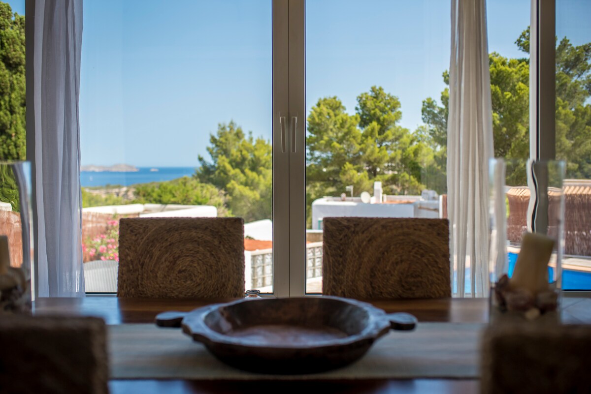 Réveillez-vous en profitant du soleil qui illumine votre maison méditerranéenne et dégustez un café sur votre solarium privé avec vue panoramique sur la mer et Cala Tarida. Cette maison de deux étages allie confort, style et convivialité ; elle est idéale pour les familles ou les groupes d’amis qui souhaitent découvrir le meilleur d’Ibiza. Détendez-vous dans le salon spacieux, dans la cuisine entièrement équipée ou sur la terrasse extérieure, au son de la brise d’Ibiza et du bruit de la mer.