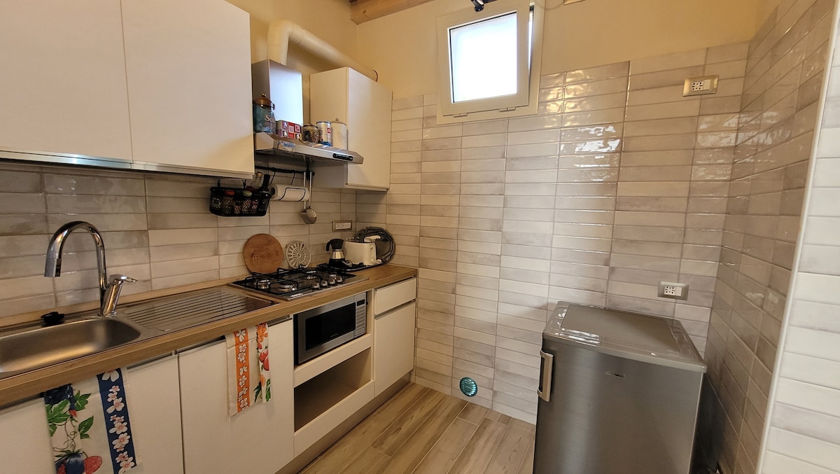 Petit penthouse sur la mer de Cagliari, confortable, avec une terrasse sur trois côtés d’où vous voyez la mer, la lagune des flamants roses, le profil de la Selle du Diable, le lever et le coucher du soleil. À 20 mètres se trouve le front de mer piétonnier avec piste cyclable et la plage du Poetto avec ses kiosques. À 50 mètres l’arrêt de bus vous relie au centre ville en 15 min. Récemment construit, le penthouse dispose d’un système domotique moderne. Au troisième étage sans ascenseur IUN : Q5306