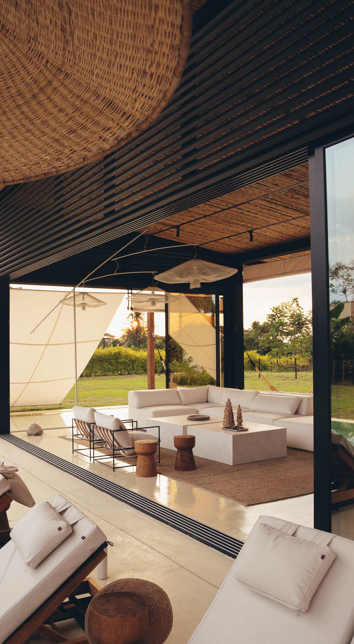 Kick back and relax in this calm, stylish three level space. Listen to the sounds of nature all around and enjoy bird watching on the terrace. This house has three bedrooms with Queen size beds on the main floor; each with it’s own private bathroom and a huge master suite with free standing tub on the second floor. The terrace dining table seats 10 people comfortably. The lower level has a pool table and 3 hanging beds to relax on. A few steps away, there is a garden jacuzzi for up to 8 people.