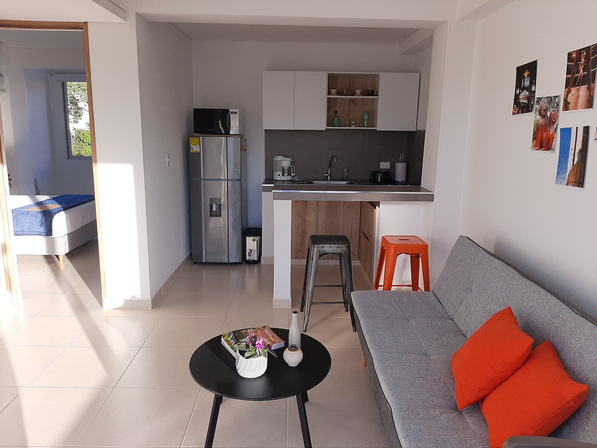 Studio moderne entièrement équipé de deux pièces et de deux terrasses. Il dispose d'une chambre et d'une salle de bain. Dans le salon, il y a un canapé-lit. Vous pourrez profiter des meilleurs petits déjeuners ou repas sur sa grande terrasse avec vue sur les Farallones de Cali où vous pourrez partager de merveilleux couchers de soleil. Emplacement stratégique à proximité des routes principales du sud, des supermarchés, à 5 minutes des cliniques Farallones et Santillana et du centre commercial Palmeto, à 2 minutes du siège national de Coomeva.