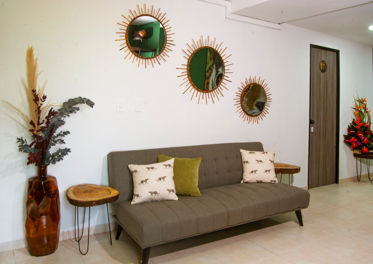 Bienvenue au Bohemia Boutique Hostel ! Votre chambre privée king size avec climatisation, salle de bain attenante et design tropical offre un mélange parfait de confort et de style. Travaillez à distance avec une connexion Wi-Fi rapide dans notre espace de coworking, cuisinez dans la cuisine commune ou détendez-vous sur la terrasse ensoleillée et dans le salon confortable. Réception 24h/24 et 7j/7 dans un quartier sûr et calme, idéal pour les nomades, les couples et les explorateurs à Cali.
