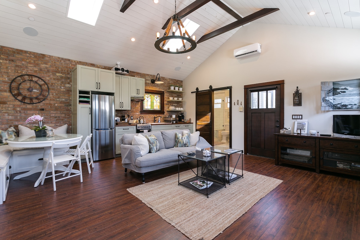 Oasis rénovée pour une escapade parfaite dans cette maison d'hôtes privée au design éclectique et coloré qui mêle un décor contemporain, rural et d'inspiration européenne avec des luxes modernes et des puits de lumière spectaculaires. Détendez-vous paisiblement dans le jardin luxuriant juste à l'extérieur de la chambre. NOUS ACCEPTONS JUSQU'À 2 CHIENS AVEC DES FRAIS DE MÉNAGE SUPPLÉMENTAIRES DE 150 $. AUCUN CHAT. VEUILLEZ NOTER QU'IL Y A 3 CAMÉRAS DE SURVEILLANCE VIDÉO EXTÉRIEURES DANS L'AIRE DE STATIONNEMENT ET L'ALLÉE, POUR LA SÉCURITÉ DES INVITÉS.