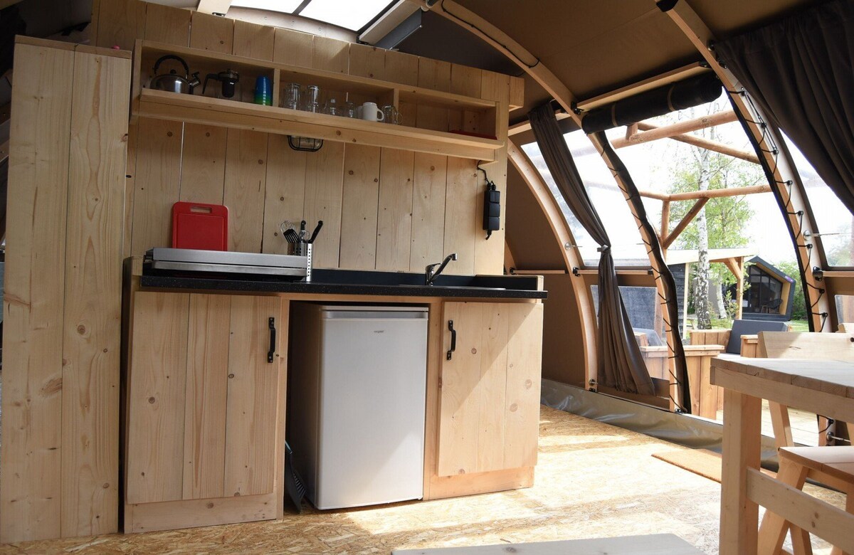 Le confort de notre tente panoramique est spécial, tout comme son emplacement en bordure d'une réserve naturelle ! La forme et les grandes fenêtres rendent la tente spacieuse. Le poêle à granulés vous permet également d'être au chaud les jours plus froids !
