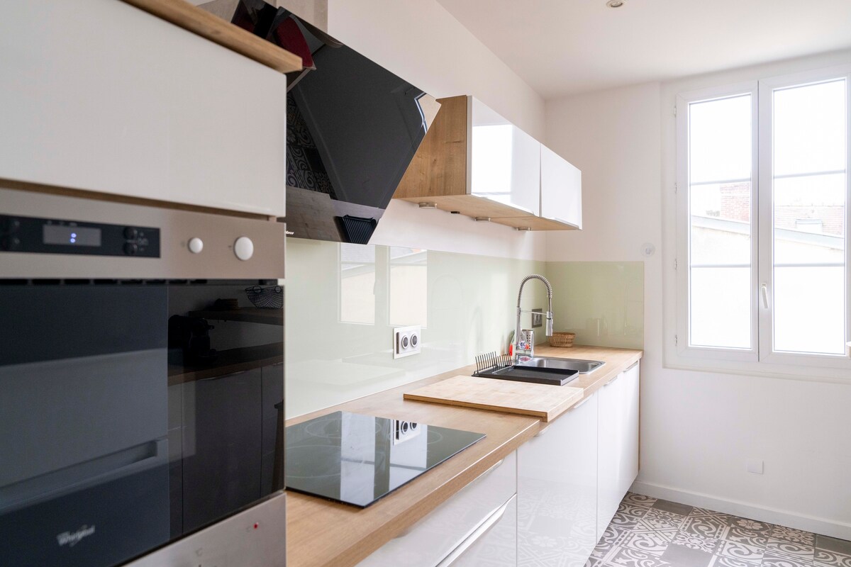 Bienvenue 🤗 ! Notre appartement (63 M2) ou la pierre épouse le design moderne vous offre une vue imprenable sur le château et l'église Saint Pierre. Idéalement situé en lisière des rues piétonnes, vous êtes à quelques pas du quartier médiéval du VAUGUEUX. Le jardin des Plantes et les commerces sont au pied de l'immeuble 🌳 Oubliez la voiture 🅿️ l'hypercentre et tous les sites emblématiques sont accessibles à pied. Votre escale clé en main pour allier l'histoire, exploration et pure détente.