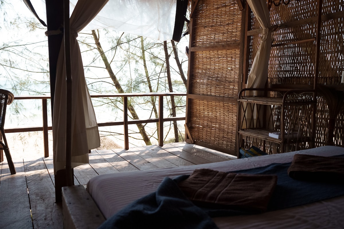 Les bungalows de Koh Ta Kiev sont situés au coucher du soleil sur l'île, juste au milieu de la belle plage de Long Beach. À la fois gérée et détenue par le cambodgien, nous offrons une expérience authentique sur une plage tropicale et encore préservée où vous pouvez échanger avec les habitants. L'ambiance est accueillante et détendue. Construits en bois et en paille, les bungalows sont basiques, confortables et privés. Assis juste entre la jungle et la plage, chacun d'entre eux est équipé d'un balcon immense et d'un lit d'extérieur.