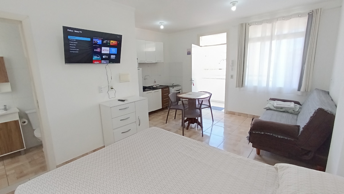 Embrassez la commodité dans cet endroit calme et bien situé. Profitez de Balneário Camboriú, logé dans un Kitnet avec un emplacement unique, à proximité de tout, restaurants, bars, supermarché 24 heures, banques, commerces, etc. Appartement complet, avec air conditionné et beaucoup de confort. Nous acceptons uniquement les groupes familiaux. Maximum 02 adultes et un enfant jusqu'à 12 (douze) ans; Nous n'avons pas de garage.