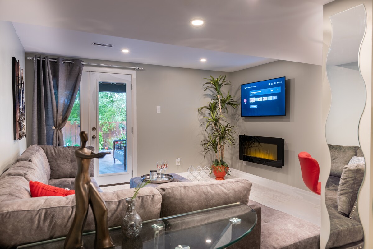Bienvenue dans notre tout nouveau sous-sol d'une chambre, où le confort et la propreté se rencontrent. Profitez d'un séjour spacieux parfait pour se détendre, et d'une cuisine confortable et bien équipée pour préparer de délicieux repas. Chaque détail a été pris en compte pour assurer un séjour confortable et agréable. Avec des équipements modernes et une ambiance fraîche, vous vous sentirez chez vous. Explorez les attractions à proximité et revenez dans votre sanctuaire privé pour une retraite paisible. Venez découvrir le charme de notre logement bien aménagé !