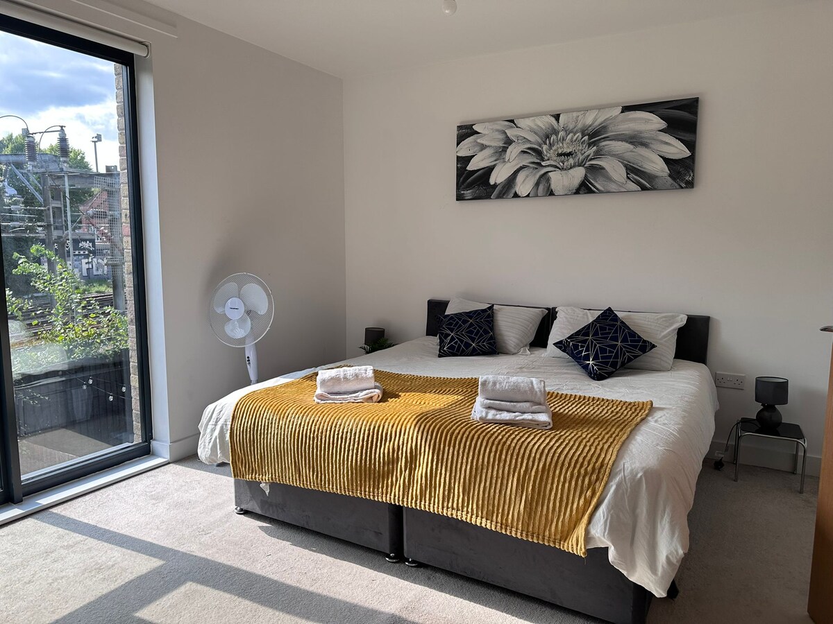 Appartement moderne de deux chambres au cœur de Shoreditch/Hoxton, avec un espace de vie ouvert lumineux et un balcon privé. Idéal pour les familles, les couples ou les amis, l'appartement peut accueillir confortablement quatre personnes et est parfaitement situé pour explorer l'est de Londres. La station de métro est à seulement 5 minutes à pied, se déplacer à Londres est simple et pratique.