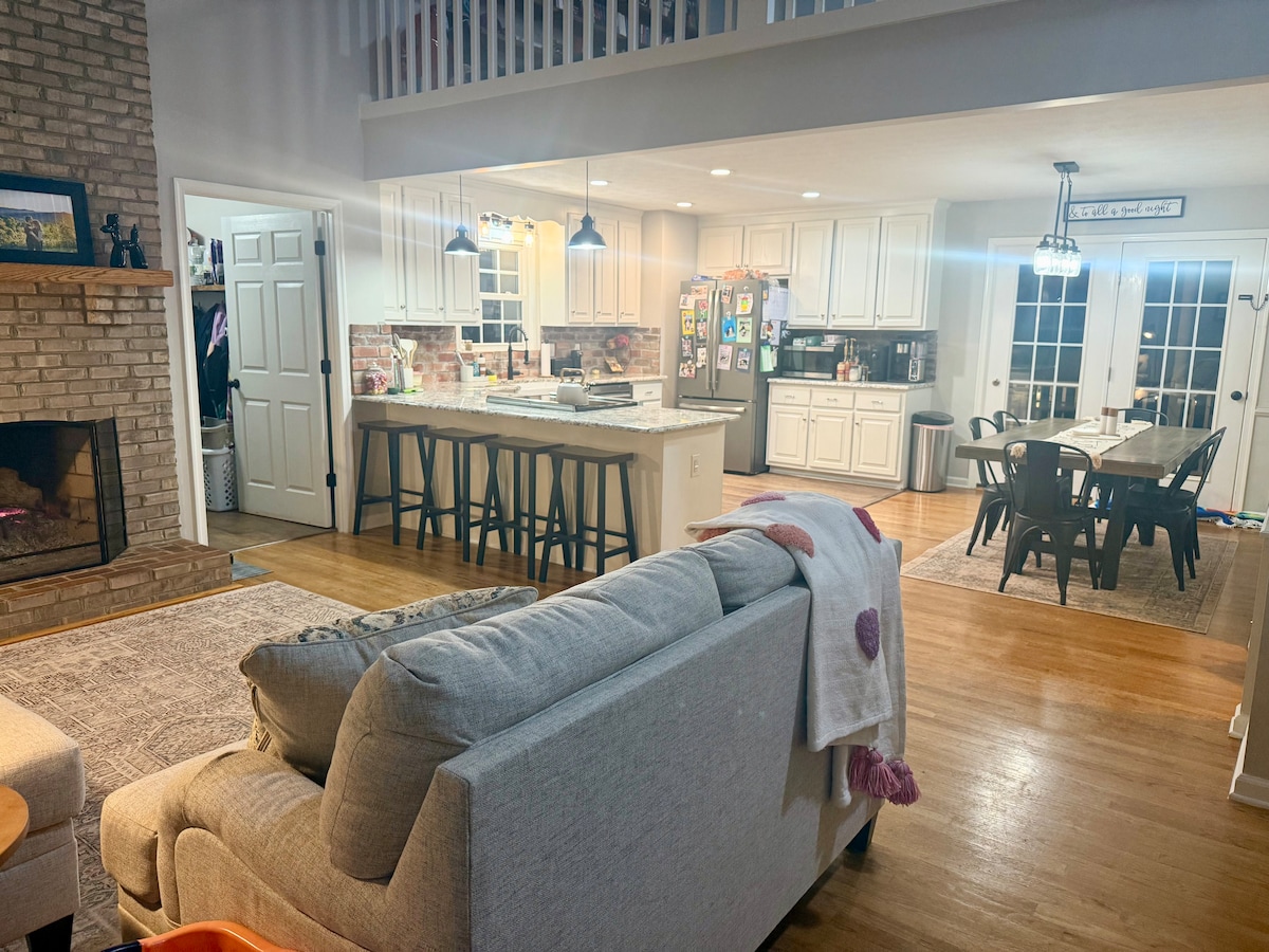 Le charme historique rencontre le luxe moderne @ "Harrison House.« Cette beauté DU CENTRE-VILLE de 1905 dispose de 4 BR, dont une superbe suite parentale avec un plafond cathédrale de 25 pieds. Les plafonds aérés de 10 pieds complètent un plan d'étage ouvert avec cuisine rénovée et deux espaces de vie en bas. Tous les campus de la région sont à courte distance en voiture. Détendez-vous sur la porche avant, faites griller sur la terrasse, profitez de la télévision 65 pouces ou promenez-vous dans les rues historiques (vallonnées) et profitez de tout ce que le centre-ville de Lynchburg offre ! J'aimerais beaucoup vous accueillir, vous et la vôtre @ Harrison House !