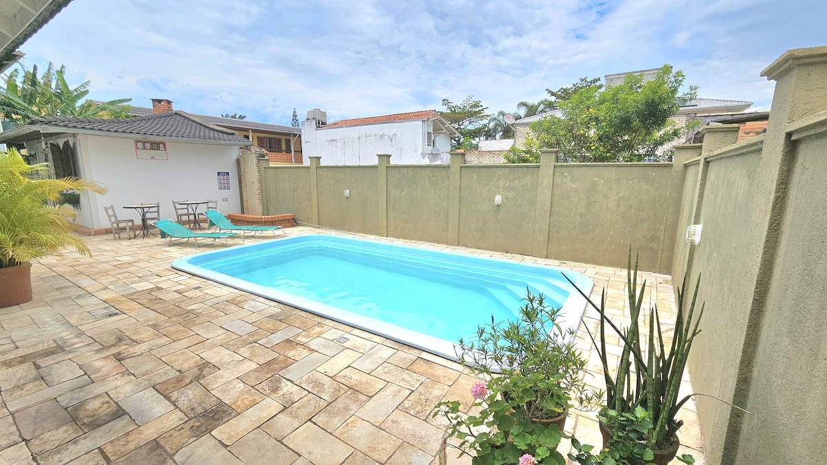 Vivez des journées uniques à Floripa ! 🌴✨ Profitez d'un espace privé et confortable, parfait pour se détendre. Situé à 8 minutes de l'aéroport, à 15 minutes du centre-ville et à 9 km de la plage de Campeche. Installez-vous dans la suite climatisée, préparez vos repas dans la cuisine complète (avec four, micro-ondes et ustensiles), profitez d'un délicieux petit déjeuner et profitez de l'espace extérieur exclusif avec spa à remous chauffé. Confort, intimité et praticité pour un séjour parfait et CONFORTABLE ! 🌊✨🏡