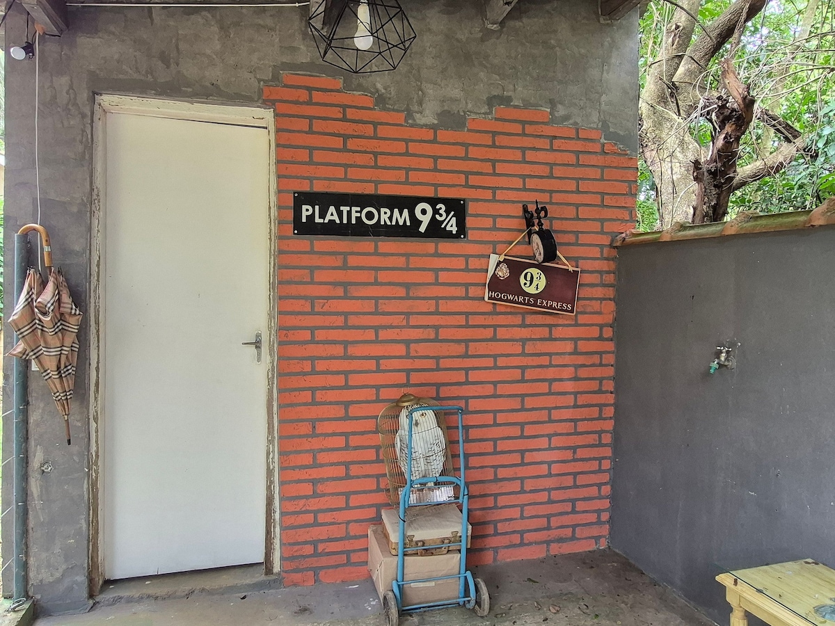 Maison sur le thème de Harry Potter, avec un lit double + 1 pouf qui se transforme en matelas simple, avec cuisine et balcon sur le thème de la salle de Poudlard et du quai 9 3/4 ; elle est située dans une petite auberge, en pleine nature, avec des attractions telles qu'un toboggan sur le lac, des kayaks, du stand up, de la slackline, une piscine, une cascade et beaucoup de tranquillité... nous servons un délicieux petit déjeuner à savourer tranquillement, en pleine nature. Lac avec poissons apprivoisés (nourrissez nos carpes). De petits animaux vivent ici.