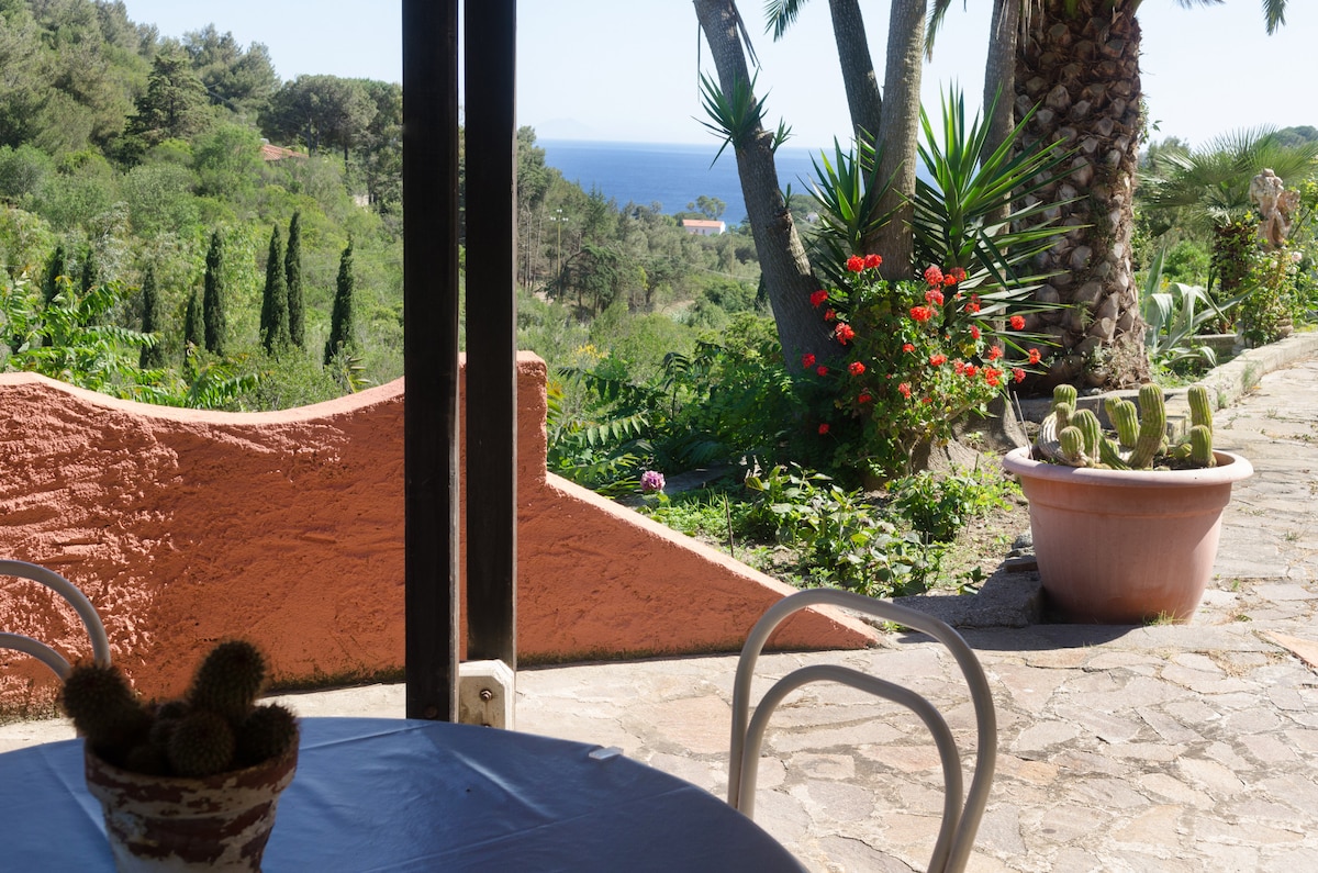 Delizioso appartamento arredato con cura, in stile etnico, provvisto di ogni comfort, in un casolare appena ristrutturato secondo i principi della bioedilizia, immerso nella macchia mediterranea del più bel versante dell'isola d'Elba, con vista mozzafiato sull'arcipelago toscano e sulla Corsica, a 250 m sul livello del mare, dominante la spiaggia di Cavoli. L'appartamento è composto di soggiorno con angolo cottura e divano-letto per due persone, camera matrimoniale e bagno con doccia e ampio spazio esterno attrezzato per pranzare e prendere il sole. Il luogo è raggiungibile con una strada sterrata di 2,5 km dal paesino di San Piero in Campo (fin dove arrivano i mezzi pubblici), distante pochi minuti di macchina dalle spiagge più incantevoli dell'isola (Cavoli, Seccheto, Fetovaia) e dal centro turistico e commerciale di Marina di Campo. E' consigliabile disporre di un mezzo proprio. La casa è immersa nella tipica macchia mediterranea alternata a grandi e suggestive scogliere di granito. Il grande giardino è recintato, contiene un orto e un uliveto. Non vi sono altre abitazioni nei dintorni. Intorno alla località si snodano i più suggestivi sentieri per gli amanti del trekking e della mountain bike. Ideale per chi è in cerca di silenzio, relax, aria pura, e ama la natura e i luoghi un pò speciali. I padroni di casa potranno aiutarvi per ogni evenienza e perplessità. BREATHTAKING VIEW ON THE ARCHIPELAGO Charming apartment,furnished in ethnic style,with every comfort,in an old cottage just renovated according to the bioarchitecture,amidst the Mediterranean bush in the most beautiful part of Elba island with breathtaking views on the Tuscan archipelago and (email hidden) a.s.l.,overlooking famous Cavoli beach. The apartment has a living room with kitchenette and divan bed for two persons,a double bedroom and a bathroom with shower and a large outside patio for eating and sunbathing. You can reach the place through a 2,5 Km dirt road from San Piero in Campo,where pubblic transport ends,and from where ,in few minutes by car you can get to the best beaches of the island (Cavoli,Seccheto,Fetovaia etc.),and to the touristic and service centre of Marina di Campo. It's better to have your own car or motorbike(you can rent it anywhere on the island). The house is surrounded by the typical mediterranean bush scattered with huge granite cliffs. The large garden has an olive grove and a vegetable garden. The place is secluded and there are no other houses in the surroundings. It's an ideal place for trekking and mountain biking and lovers of relax,peace,nature and special places. Your host are ready to help for any need and request.