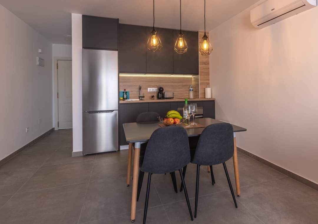 Appartement très bien situé, neuf, récemment rénové, à seulement 10 minutes à pied de la plage. Terrasse avec très belle vue. Une chambre double et un canapé lit dans le salon. Wiffi, lumière et eau inclus. Il n'y a pas d'ascenseur, escaliers jusqu'au 3ème étage. L'appartement est avec tout le nécessaire pour être habité. Chambre, cuisine et salle de bains sont équipées de tout.
