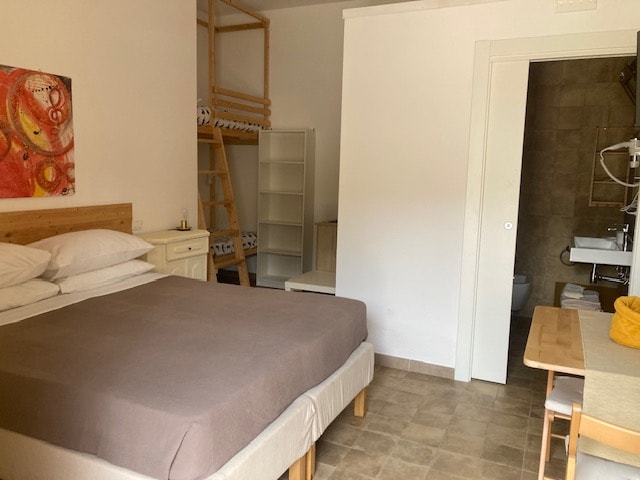 Ancienne résidence de Todd Thomas Brown, un artiste américain arrivé à Fontecchio en 2019 pour lancer une initiative de repeuplement d'artistes, désormais connue sous le nom de « The Fontecchio International Airport ». Airbnb à temps partiel, résidence d'artiste à temps partiel, voici un appartement conçu avec une attention particulière aux détails, à l'éclairage, au mobilier, orné d'œuvres d'art originales et avec des plafonds voûtés partout. Plus, un balcon et une cour intérieure. En savoir plus sur notre village ? Recherchez sur le Web « Artistes à Fontecchio » !