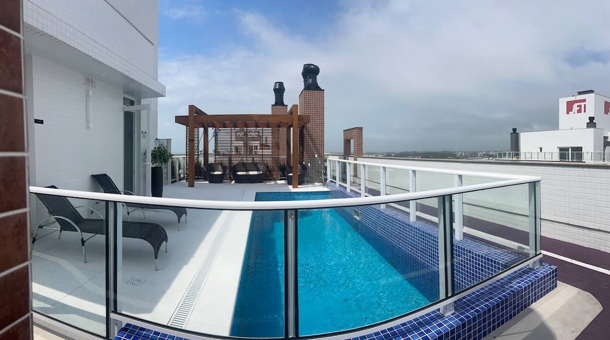 Appartement Lindo avec des meubles sur mesure. Il dispose de la climatisation chaude et froide, d'une télévision dans la chambre avec sky hd avec football, de films ,etc. (forfait presque complet) et d'une télévision dans la chambre, d'un four à micro-ondes, d'un sèche-linge, d'un barbecue. Dixième étage. Immeuble avec buanderie (payant), salle de sport, salle de fête et piscine sur le toit (fermé du 15/09 au 10/11). Dans le meilleur emplacement, où tout se passe, à côté de Praça XV et à 300 m de Prainha. Tous sont les bienvenus.