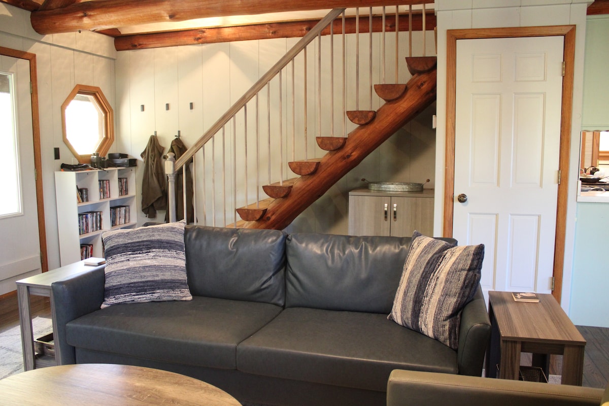 Cette jolie petite cabane sur la rivière est une cabane en rondins rénovée/modernisée des années 1940. Simple et légèrement rustique, avec tout ce dont vous avez besoin pour passer un séjour agréable ! Nous pensons qu'elle offre la meilleure vue sur toute la rivière. Il y a de l'eau peu profonde et un banc de sable au milieu de la rivière devant la maison. Les cygnes, les oies, les balbuzards et les pygargues à tête blanche sont un régal à regarder. La cabane est une escapade relaxante et intime pour les couples. Il est confortable en hiver avec un petit jacuzzi donnant sur une belle vue.