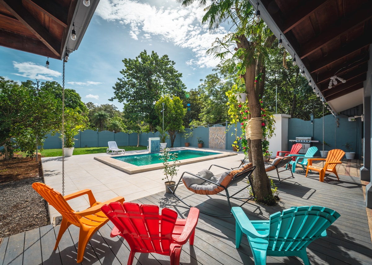 Profitez en famille de ce fabuleux logement qui offre de bons moments en perspective ! 2 chambres, 2 salles de bain avec piscine et jacuzzi. Grand belvédère ombragé et barbecue ! Proche de l'aéroport, des commerces du centre-ville de Liberia et à quelques minutes en voiture de certaines des plus belles plages du Costa Rica. Propre et nouvellement construit, avec de grandes cuisines et tous les appareils. Les suites disposent de la climatisation, de l'eau chaude, d'une buanderie, de la télévision par câble, d'une connexion Internet rapide et d'un parking sécurisé à l'intérieur de la propriété. Venez profiter du temps chaud toute l'année !