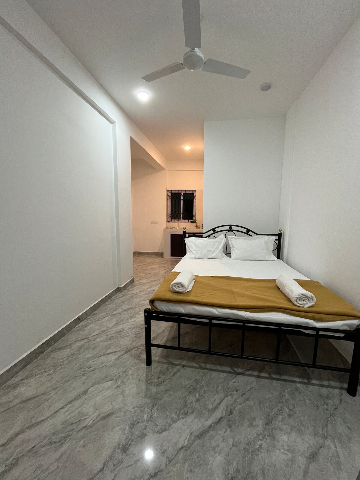 . 🌴 Sundowner: Your Serene Escape in Goa 🌅 Stay in a massive 1BHK king size bed + sofa convertible bed , with Grand Balcony just minutes from Candolim Beach. With 2 AC’s, fast Wi-Fi, power backup, a stocked kitchen, balcony, and open parking, comfort meets boho charm. Shops, cafés, and nightlife are nearby for ultimate convenience. Check-in 12 PM, check-out 11 AM. IDs required, max 4 guests Note- Soaps and water bottles to be carried by guest.