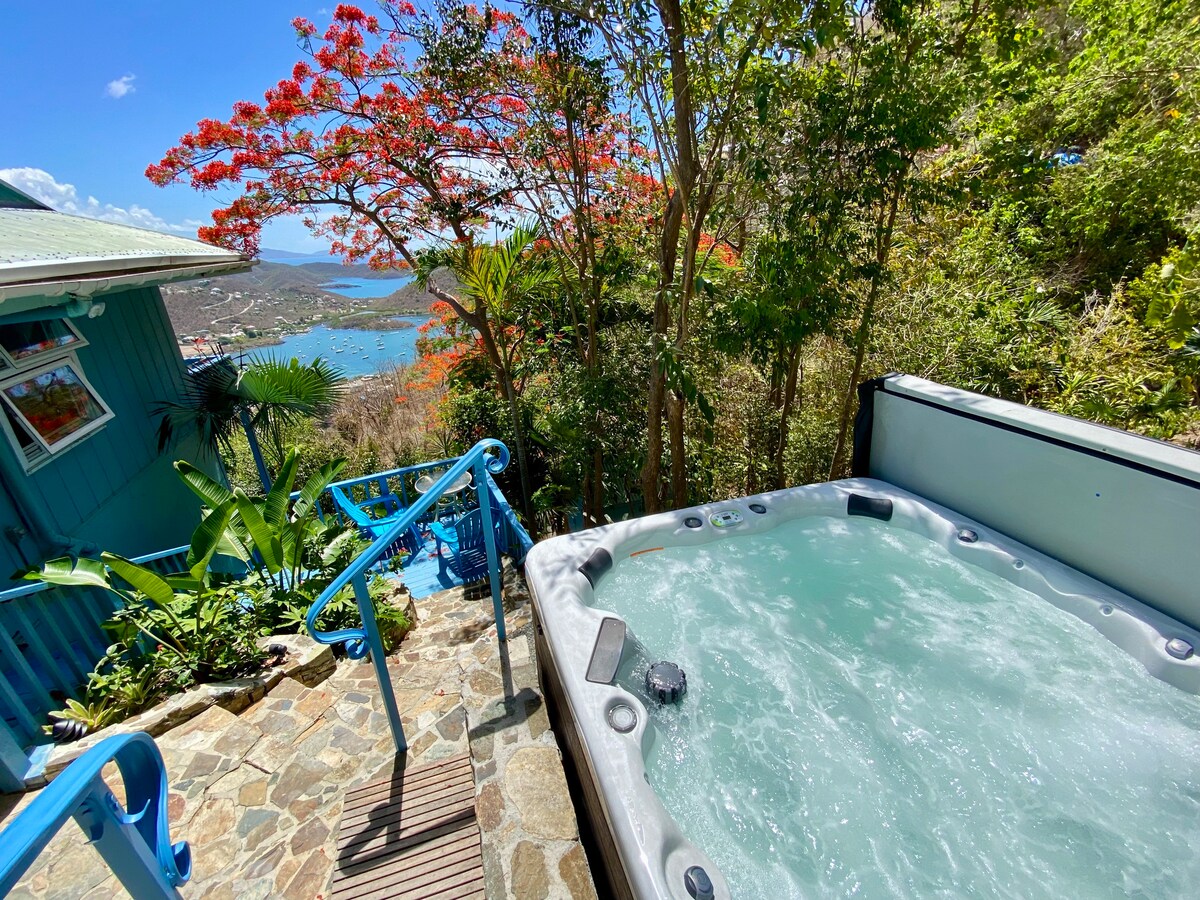 Niché en haut de Sea Grape Hill, le Bon Bini Cottage est une retraite paisible surplombant la magnifique Coral Bay, St. John. Le chalet offre des vues pittoresques, la commodité de la ville de Coral Bay et des plages à proximité, et toutes les commodités d'un logement. CARACTÉRISTIQUES CLÉS --- Une chambre, une salle de bain et demie avec climatisation. Lave-linge/sèche-linge Cuisine entièrement équipée Internet StarLink Jacuzzi Planches de paddle, flotteurs, chaises longues, glacières de plage avec blocs réfrigérants et serviettes de plage fournis
