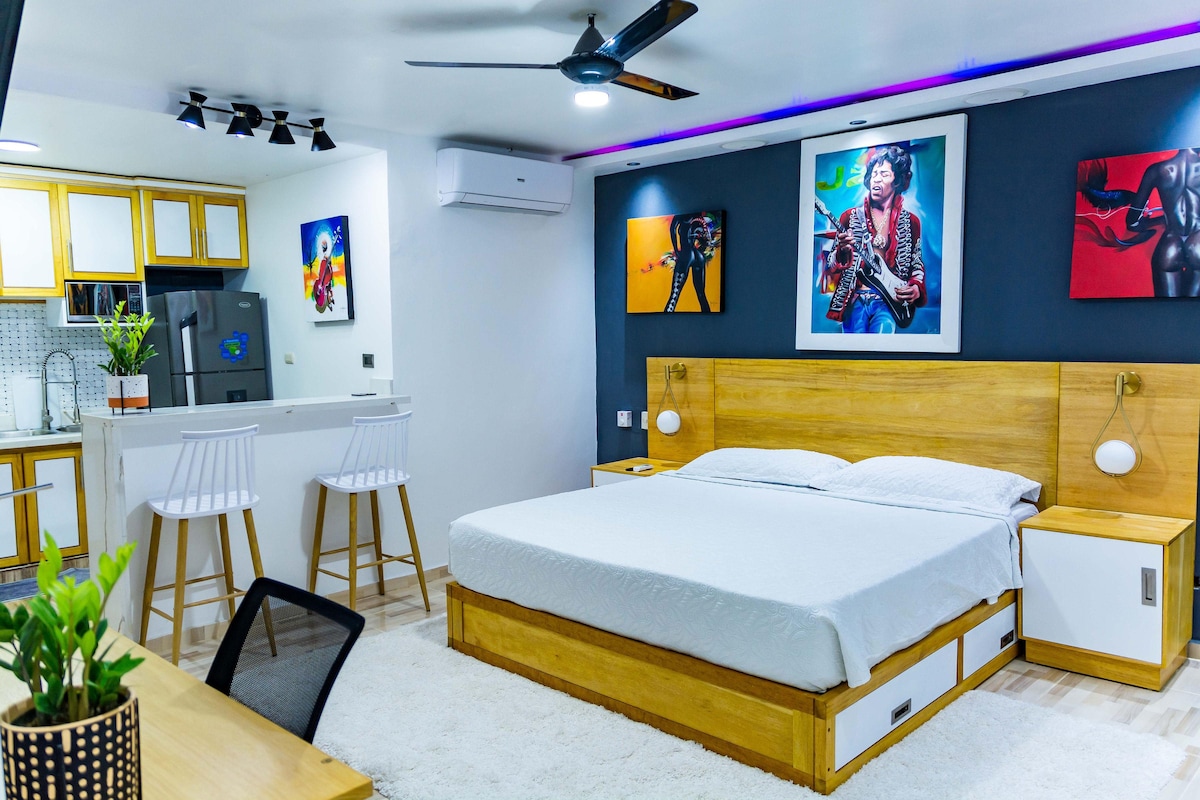 La recherche est terminée ! Commencez vos prochaines vacances ou votre prochain séjour d'une nuit à droite, et entrez dans notre appartement moderne et pittoresque de 1 chambre sur le toit au cœur de la ville de Puerto Plata. Son emplacement central étant proche de toutes les destinations touristiques et de tous les grands magasins, à 2 minutes à pied de la plage et du Malecón, et de nombreuses options de restauration, il n'y a pas de meilleure alternative pour séjourner à Puerto Plata. Il s'agit d'un complexe d'appartements fermé qui offre une sécurité 24h/24 et un parking gratuit. L'aéroport est également à 20 min