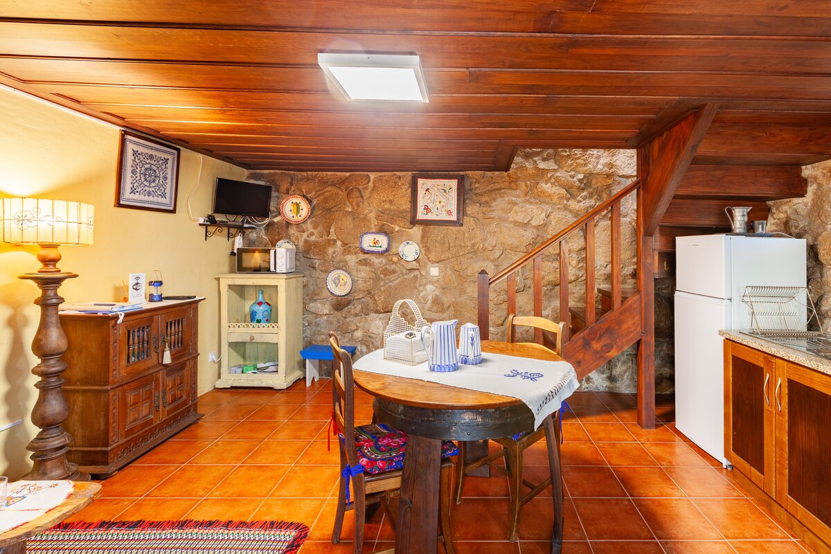 Cette confortable maison rurale est située dans le village de Lindoso, au cœur du parc national Peneda Gerês, dans la région d'Alto Minho. Le village de Lindoso est bien connu pour son château médiéval et l'un des plus grands groupes de granulés de granit typiques («espigueiros»). Il s'agit d'une ancienne maison en pierre à côté d'un ancien moulin à eau. Les deux ont été reconstruits en harmonie avec l'architecture traditionnelle de la région. C'est une invitation à profiter du calme et des paysages de l'environnement rural. DESCRIPTION : Une chambre double avec salle de bain (douche). Salon/salle à manger avec TV. Équipé d'une cuisinière, d'un four à micro-ondes, d'une machine à café et d'un réfrigérateur. Linge de lit, serviettes et produits pour le petit déjeuner inclus. Chauffage central, parking privé et un petit espace privé à l'extérieur La maison dispose d'une cheminée à granulés.