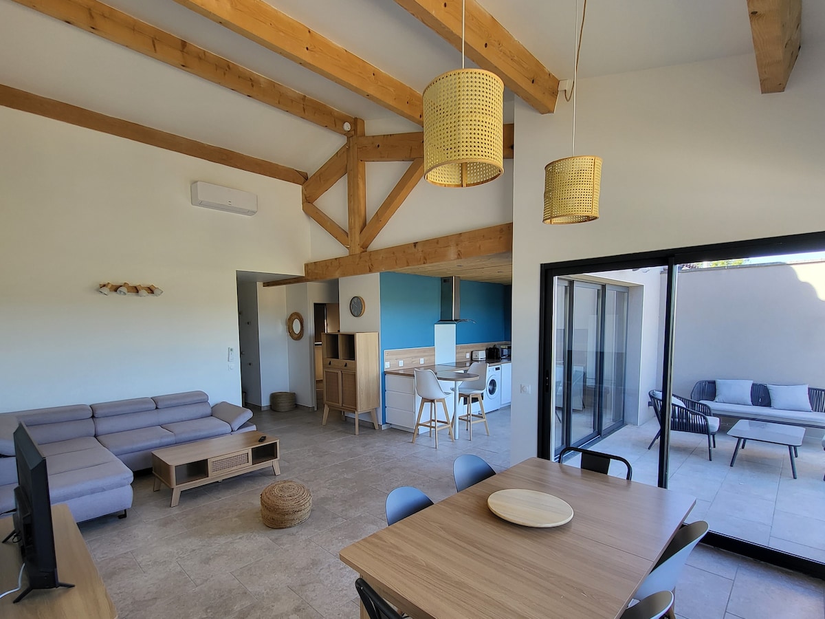 maison vigneronne clim, 8 pers plage & commerce.